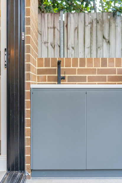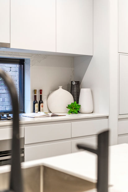 Internally, the renovation focused on creating a calm and contemporary material palette with clean architectural detailing throughout. The kitchen and living spaces adopt a restrained design language with neutral finishes, integrated joinery, and durable materials suited to everyday family use.